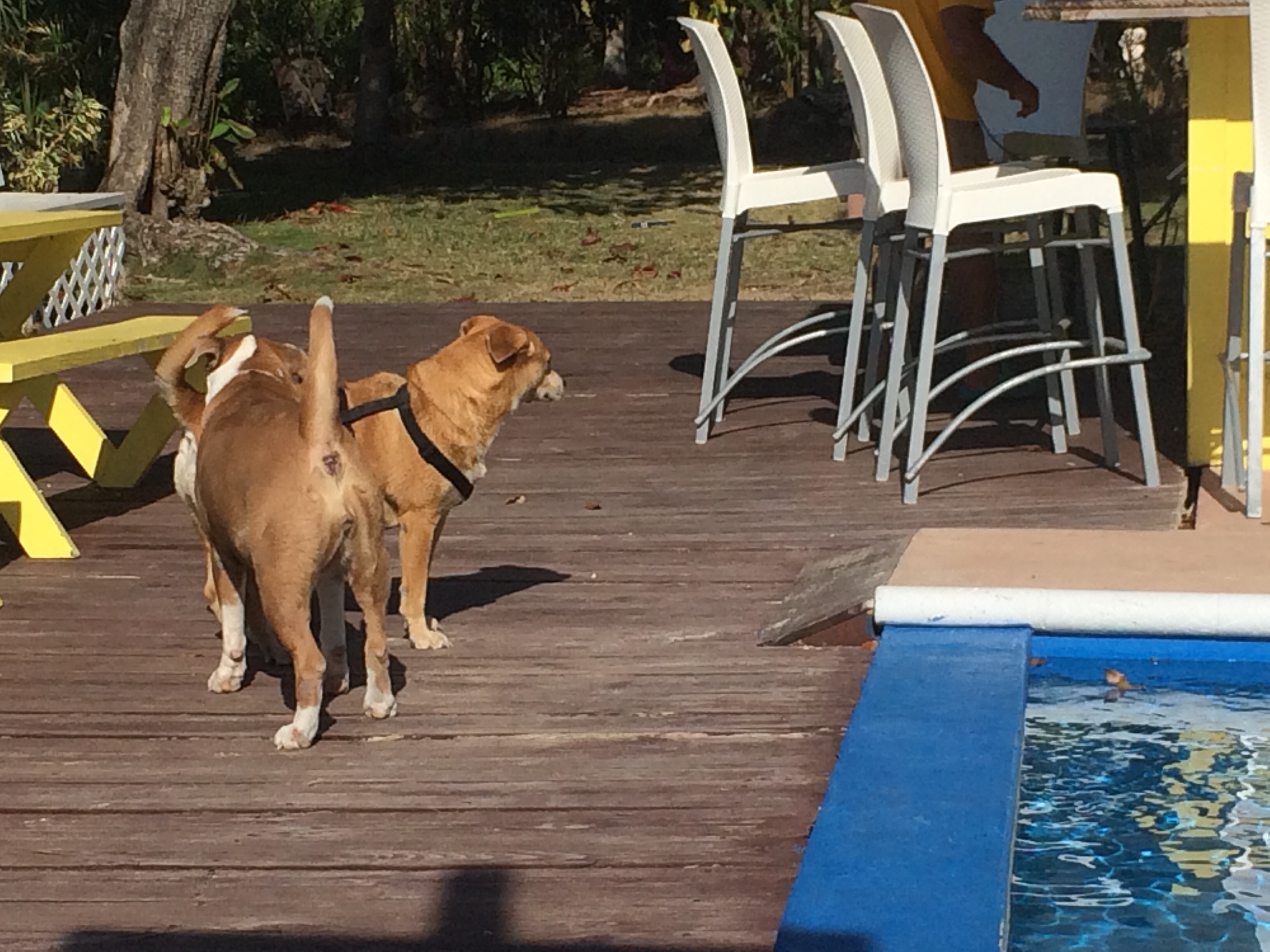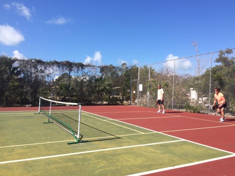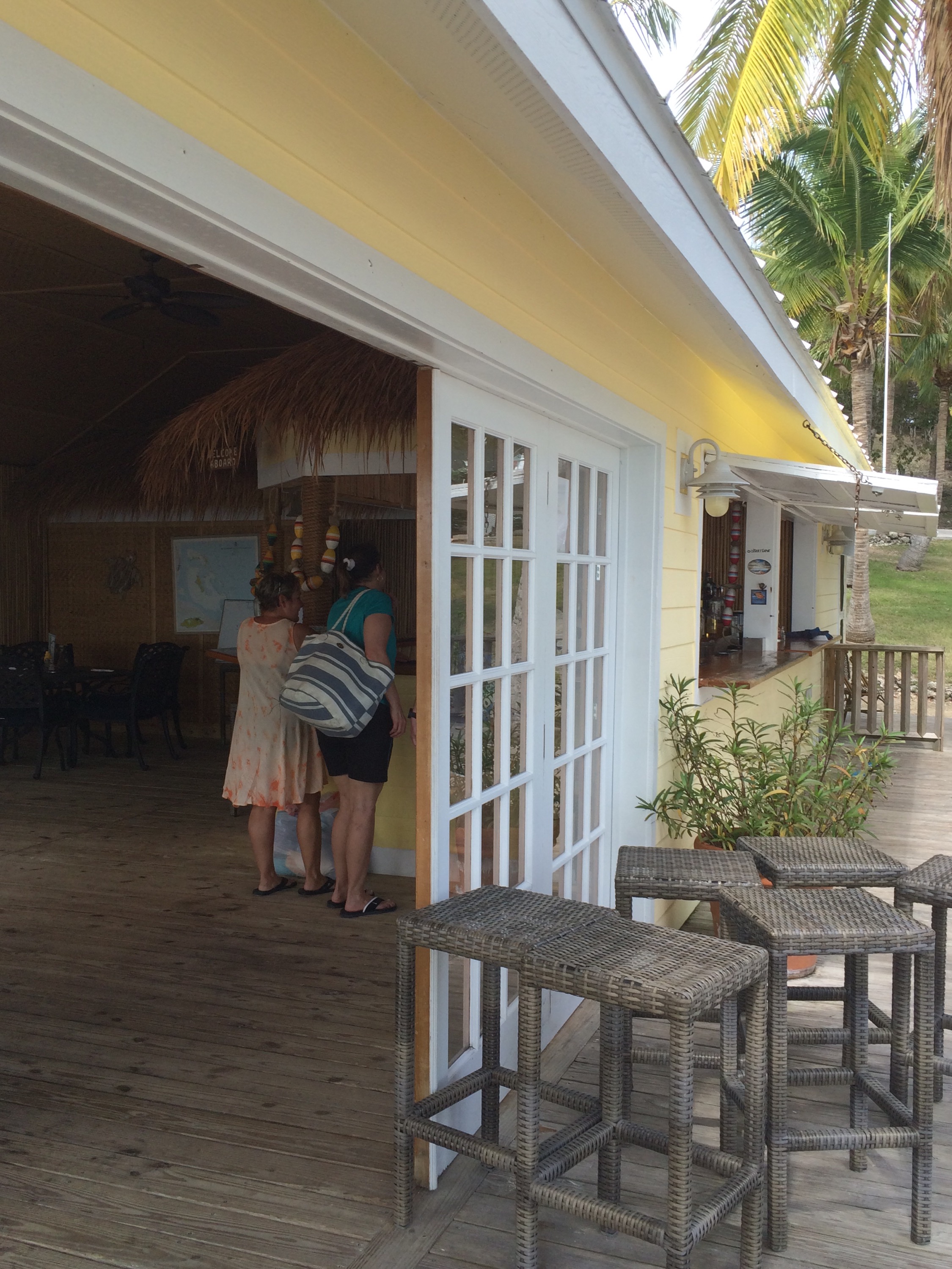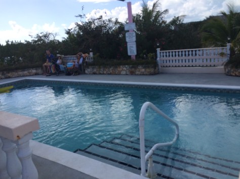 The pool was open but the tiki bar was closed until Friday. There were four little old ladies playing cards in the big ballroom.