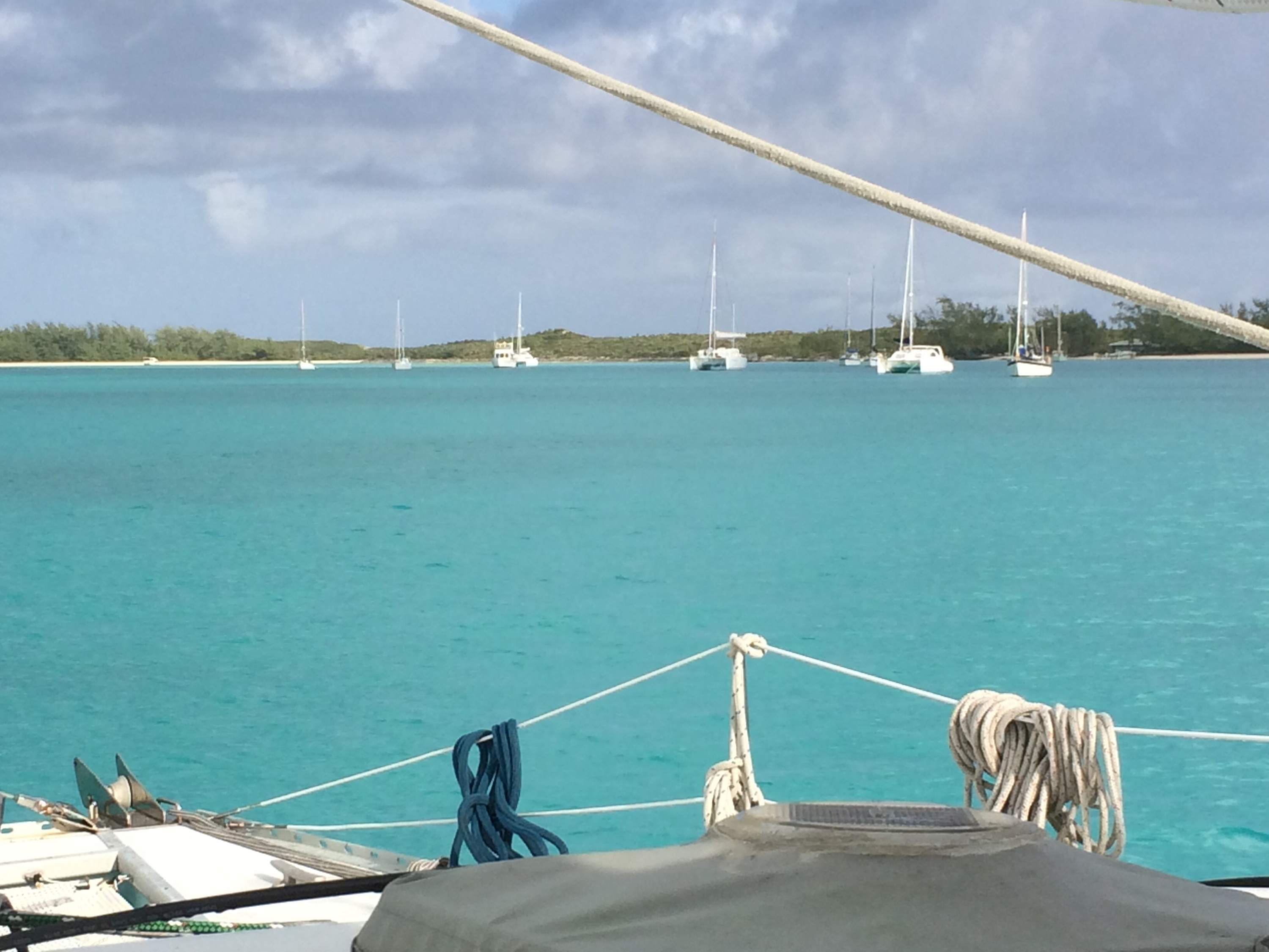 We found our spot and dropped the hook. This is the fifth anchorage that Ed has had to dive on to check. His least favorite activity.