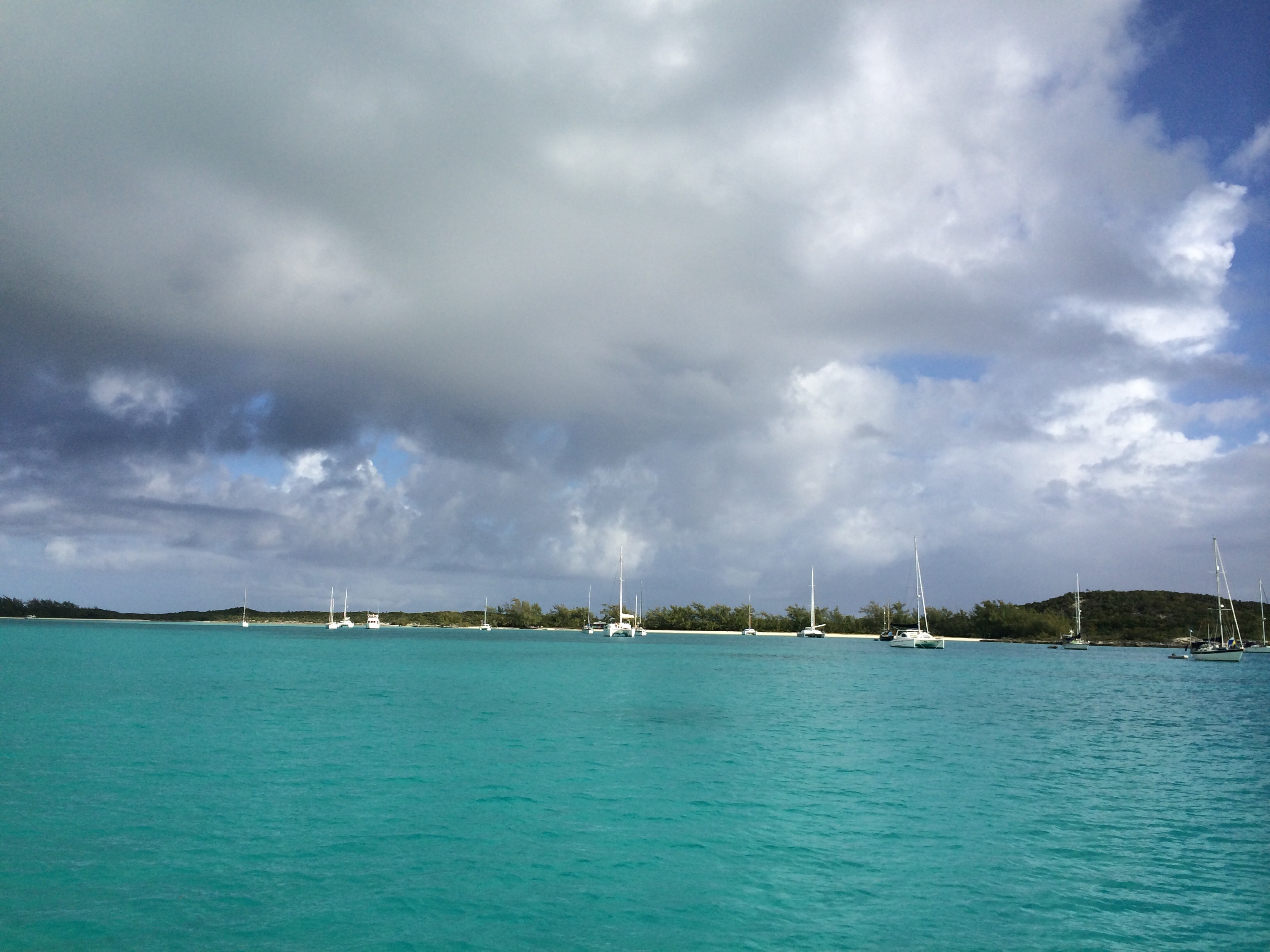 We rocked and rolled during the night but slept not too badly. There are 20 other boats out here sharing in the experience.